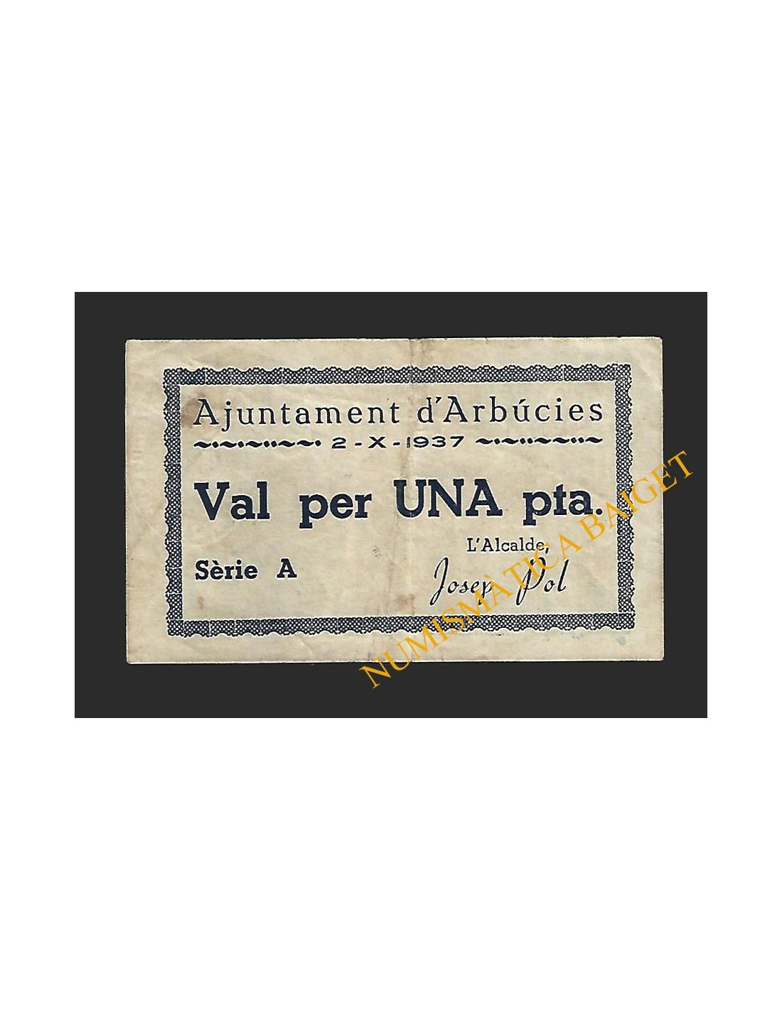 Billetes Locales Guerra Civil CATALUÑA y ANDORRA ALMACELLES (Lleida) ALMACELLES (Lleida) 1 PESSETA BL-0042 40,00 € ALMACELLES (Lleida) 1 PESSETA Añadir al carrito