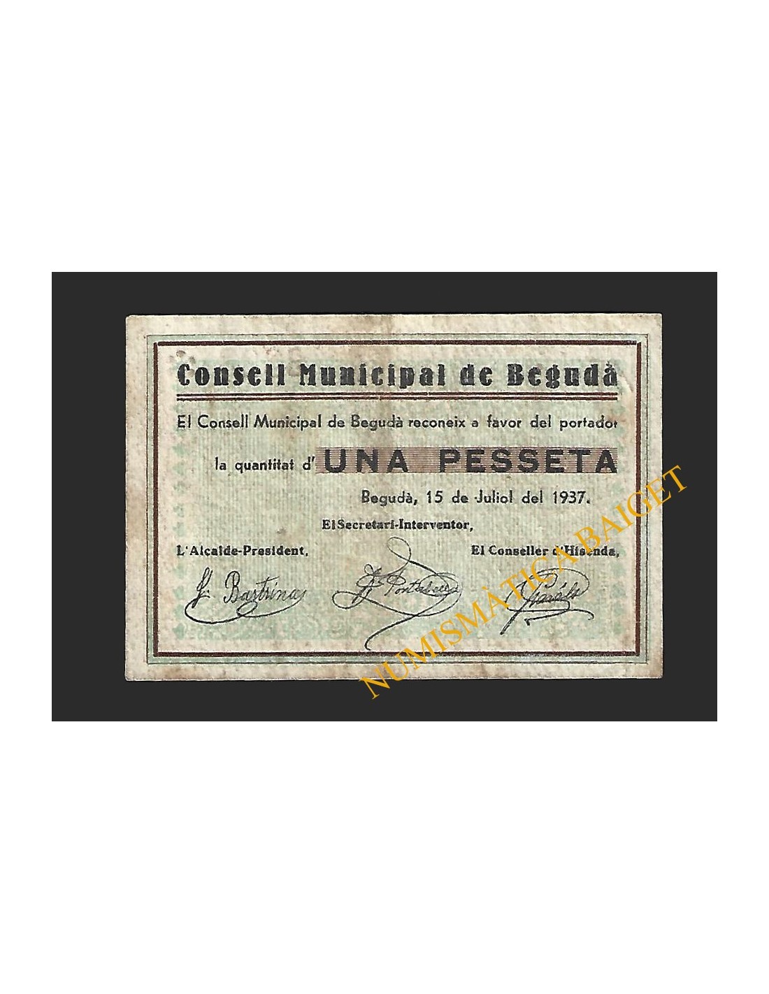 Billetes Locales Guerra Civil CATALUÑA y ANDORRA ARBECA (Lleida) ARBECA (Lleida) 1 PESETA BL-0003 50,00 € ARBECA (Lleida) 1 PESETA Añadir al carrito