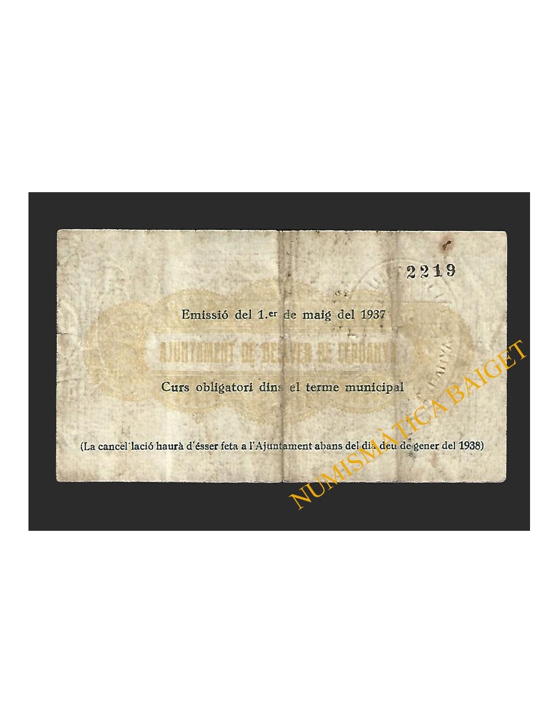 Billetes Locales Guerra Civil CATALUÑA y ANDORRA ESPLUGA DE FRANCOLI (Tarragona), 50 centims, 14 de maig del 1937 Espluga de Francolí (Tarragona) 50 centims BL-0362 40,00 € Espluga de Francolí (Tarragona) 50 centims Añadir al carrito