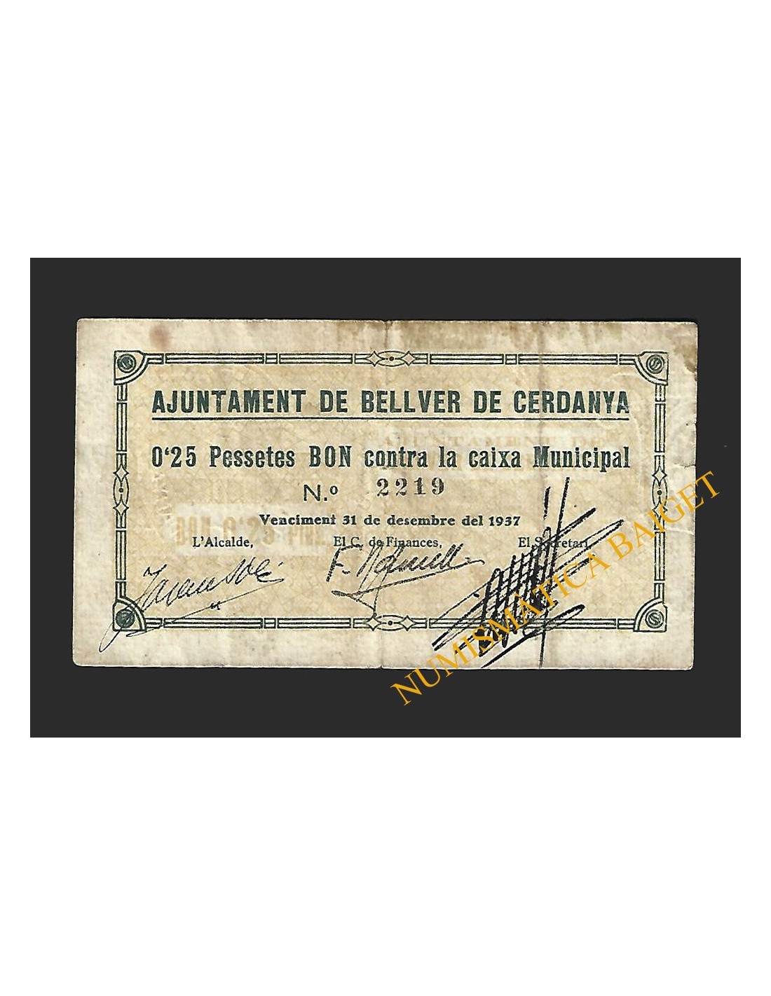 Billetes Locales Guerra Civil CATALUÑA y ANDORRA BORGES DEL CAMP (Tarragona), 1 pesseta, 1937 Borges del Camp (Tarragona) 1 pesseta BL-0194 350,00 € Borges del Camp (Tarragona) 1 pesseta Añadir al carrito