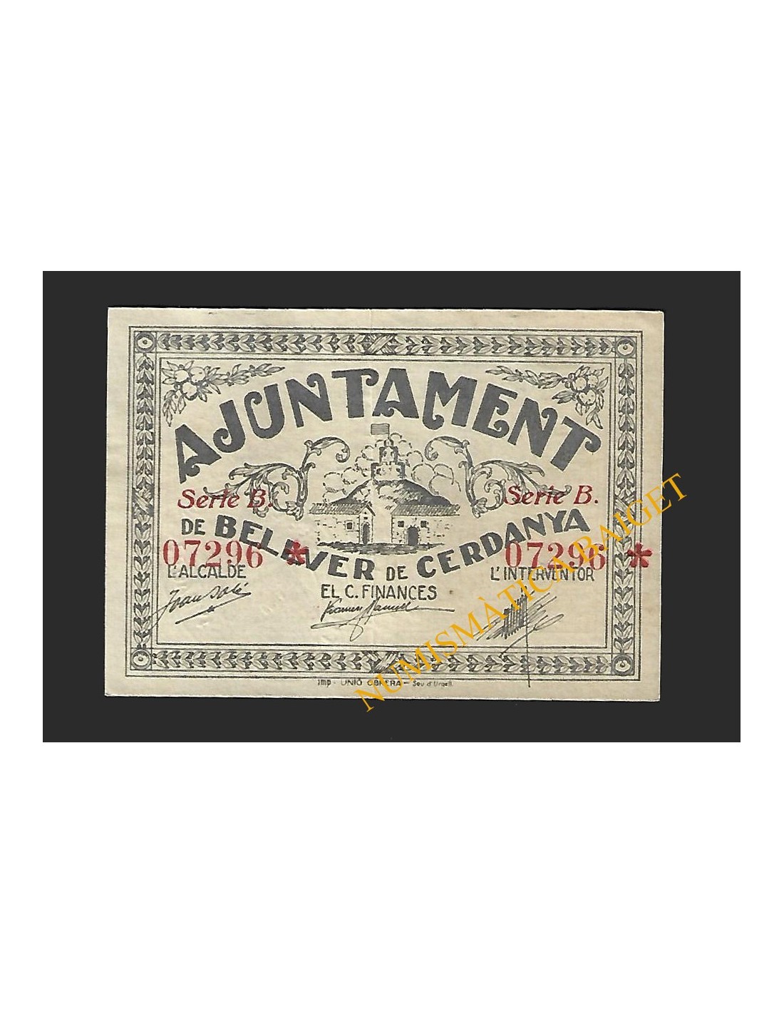 Emisión: 17 de julio de 1937. Serie: B Numeración: 07296