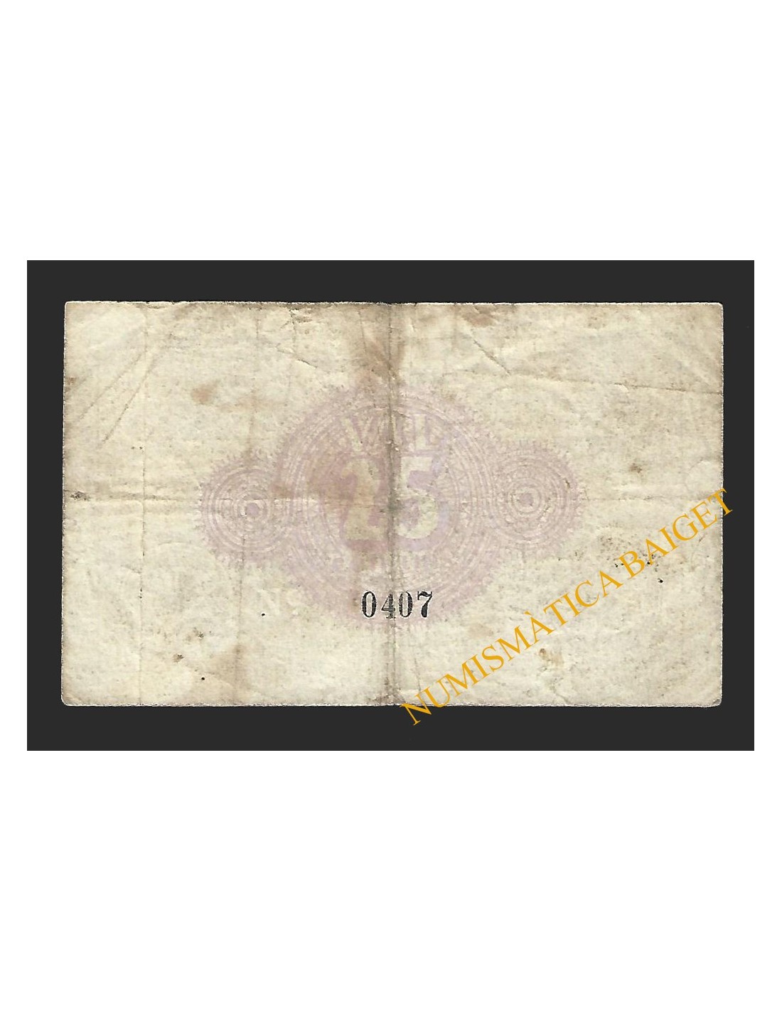 Billetes Locales Guerra Civil CATALUÑA y ANDORRA CASTELLVELLL, (Tarragona), 25 centims, novembre del 1937 Castellvell (Tarragona) 25 centims BL-0295 100,00 € Castellvell (Tarragona) 25 centims Añadir al carrito
