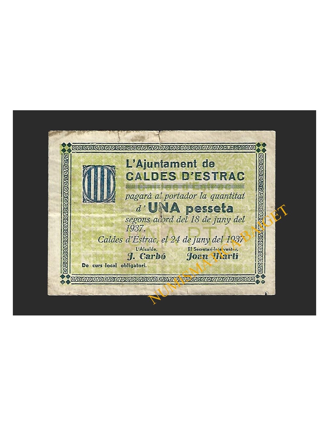 Billetes Locales Guerra Civil CATALUÑA y ANDORRA MORA LA NOVA (Tarragona), 1 pesseta, 2 de juny del 1937 Mora la Nova (Tarragona) 1 pesseta BL-0617 35,00 € Mora la Nova (Tarragona) 1 pesseta Añadir al carrito