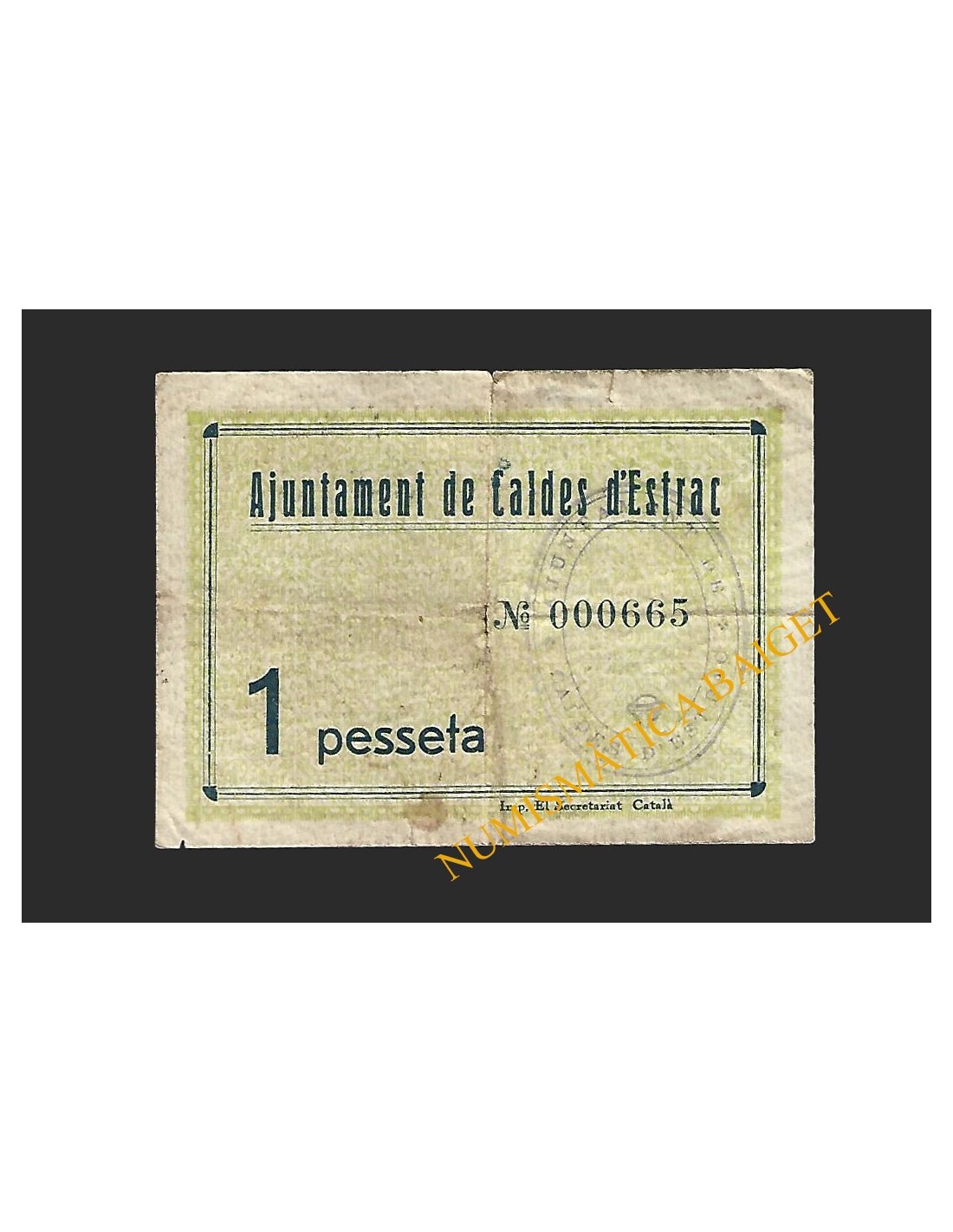 Billetes Locales Guerra Civil CATALUÑA y ANDORRA CALDES DE MONTBUI, (Barcelona), 50 centims, 13 de maig del 1937 Caldes de Montbui (Barcelona) 50 centims BL-0229 25,00 € Caldes de Montbui (Barcelona) 50 centims Añadir al carrito