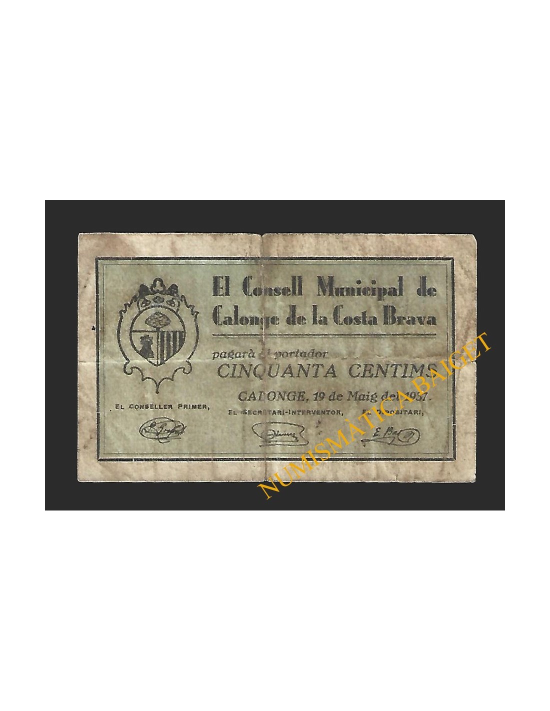 Billetes Locales Guerra Civil CATALUÑA y ANDORRA VILABOI (Barcelona) 50 cèntims, 19 de maig del 1937 Vilaboi (Barcelona) 50 cèntims BL-1132 25,00 € Vilaboi (Barcelona) 50 cèntims Añadir al carrito