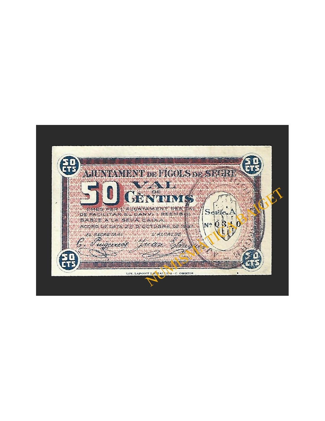 Billetes Locales Guerra Civil CATALUÑA y ANDORRA JUST DESVERN (Barcelona), 50 cèntims maig del 1937 JUST DESVERN (BARCELONA) 50 CÈNTIMS BL-1223 30,00 € JUST DESVERN (BARCELONA) 50 CÈNTIMS Añadir al carrito