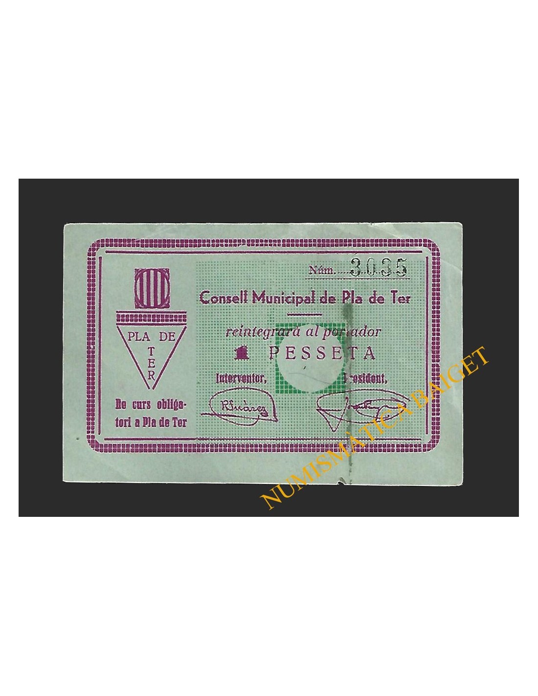 Pla de Ter (Girona), 1 pesseta