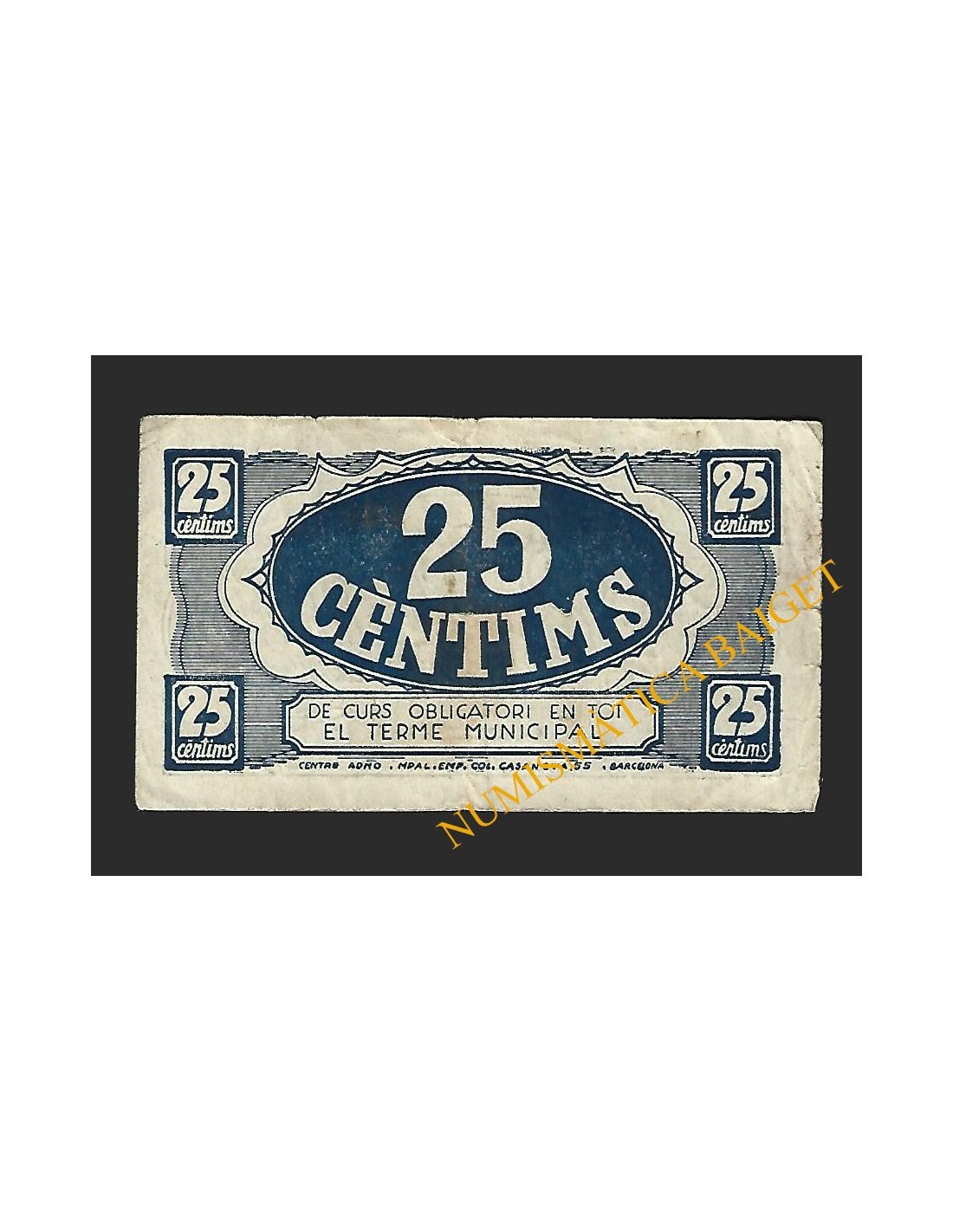 PRAT DEL LLOBREGAT, EL (Barcelona). 25 centims 2 de desembre del 1937