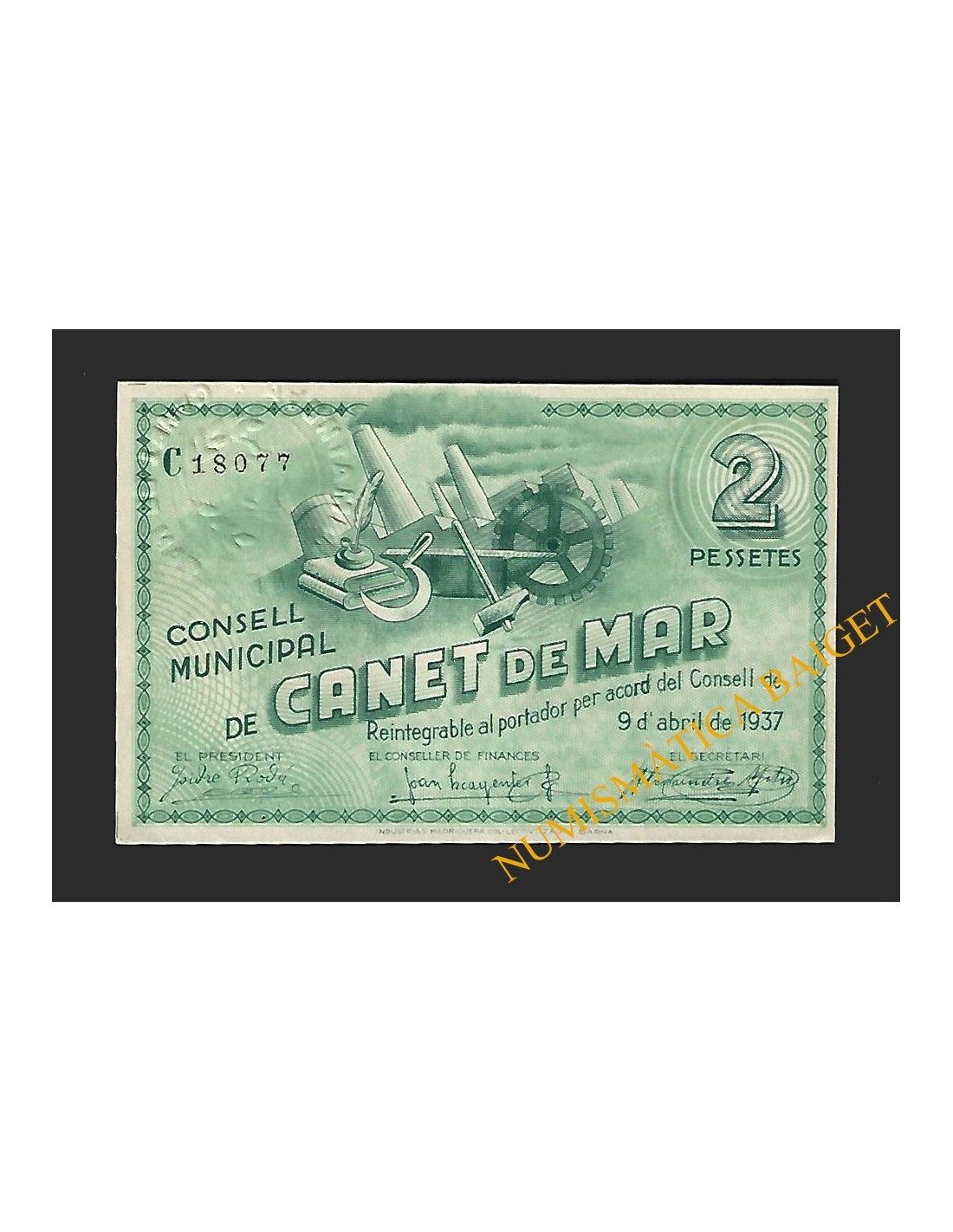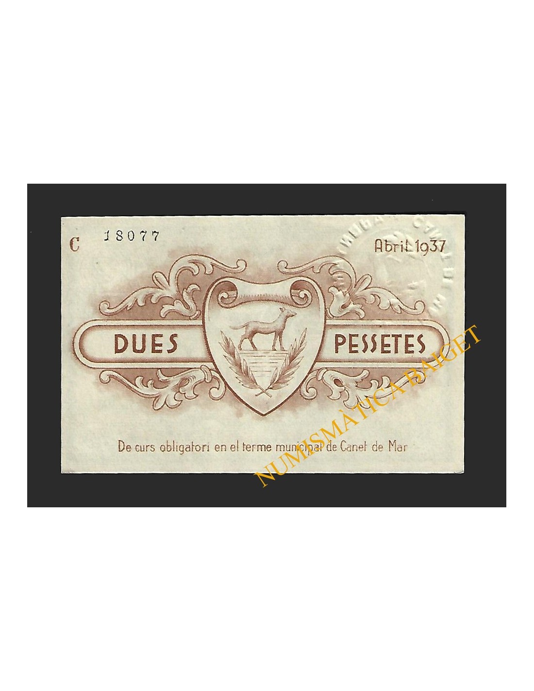 Emisión: 9 de abril de1937. Serie: C . Numeración: 18077