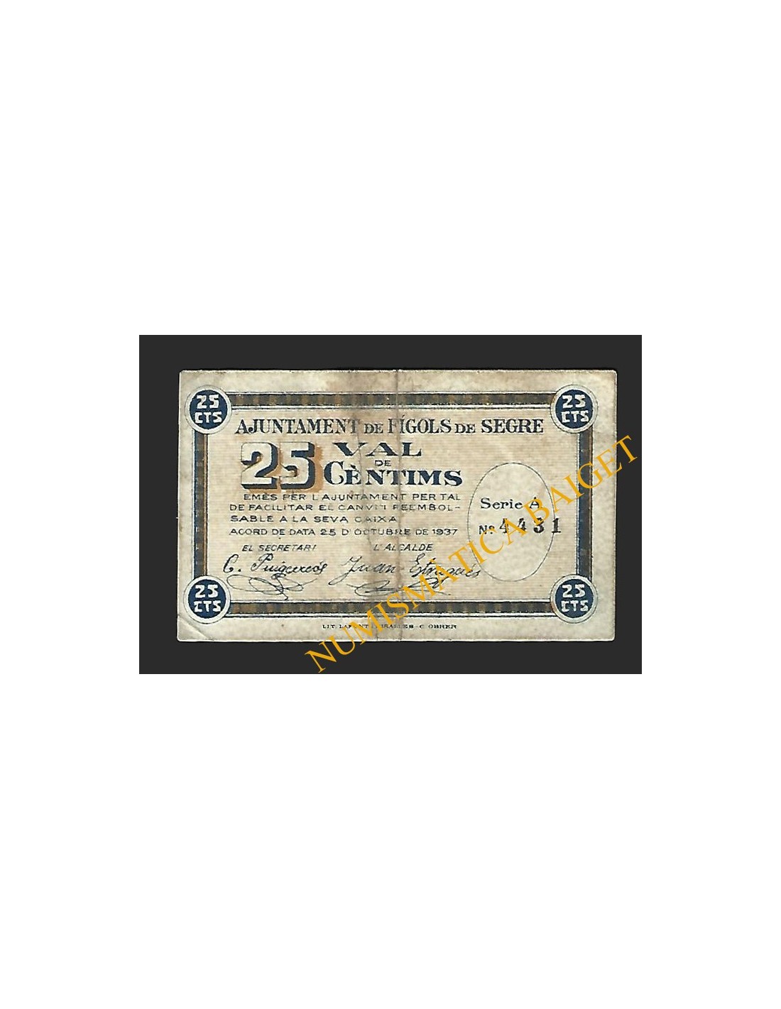 Fígols de Segre (Lleida, 25 cèntims