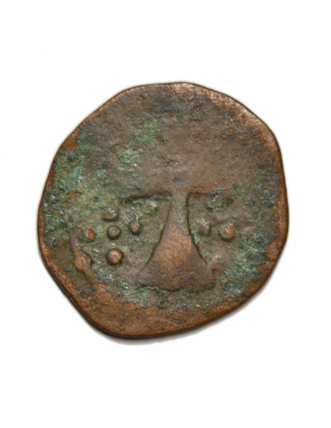 R/ T entre tres grups de cincs punts col·locats en forma de creu. Orla com a l'anvers.