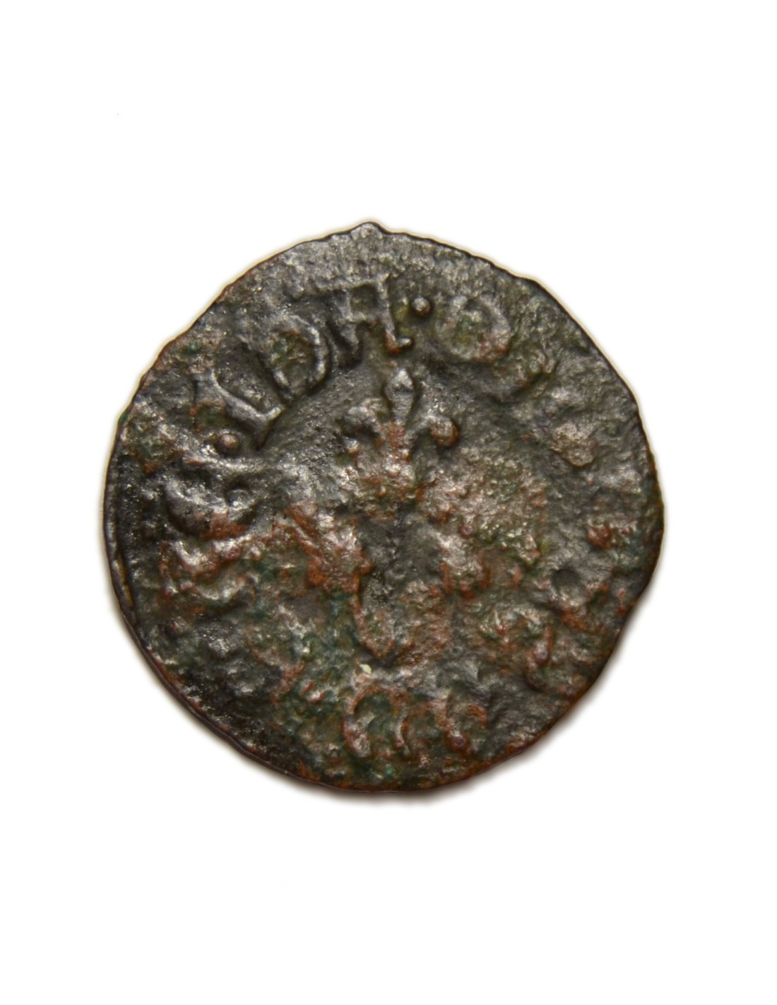 A/ Triple lirio, a su alrededor con letras góticas y mayúsculas .PUG.ESAD.ELE.DA. La S al revés. Orla de puntos.R/ Triple lirio grande. Anepígrafa, con orla de puntos.