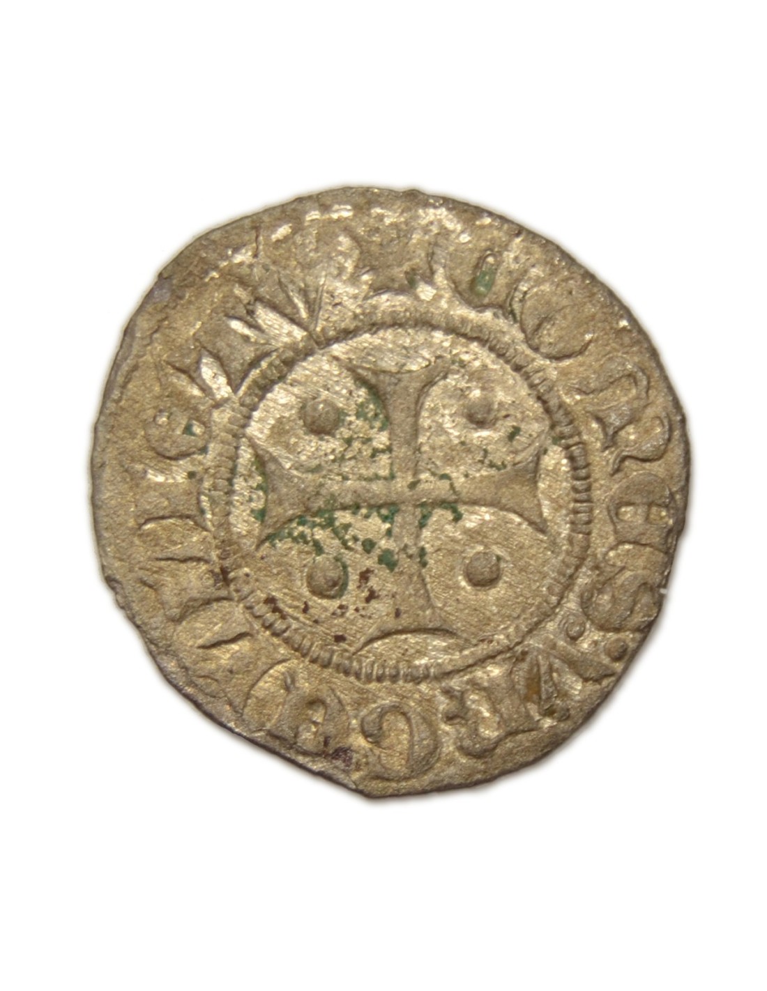 R/ Cruz interior patada con puntos en los espacios, a su alrededor: + COMES : VRGELLI : ET : V