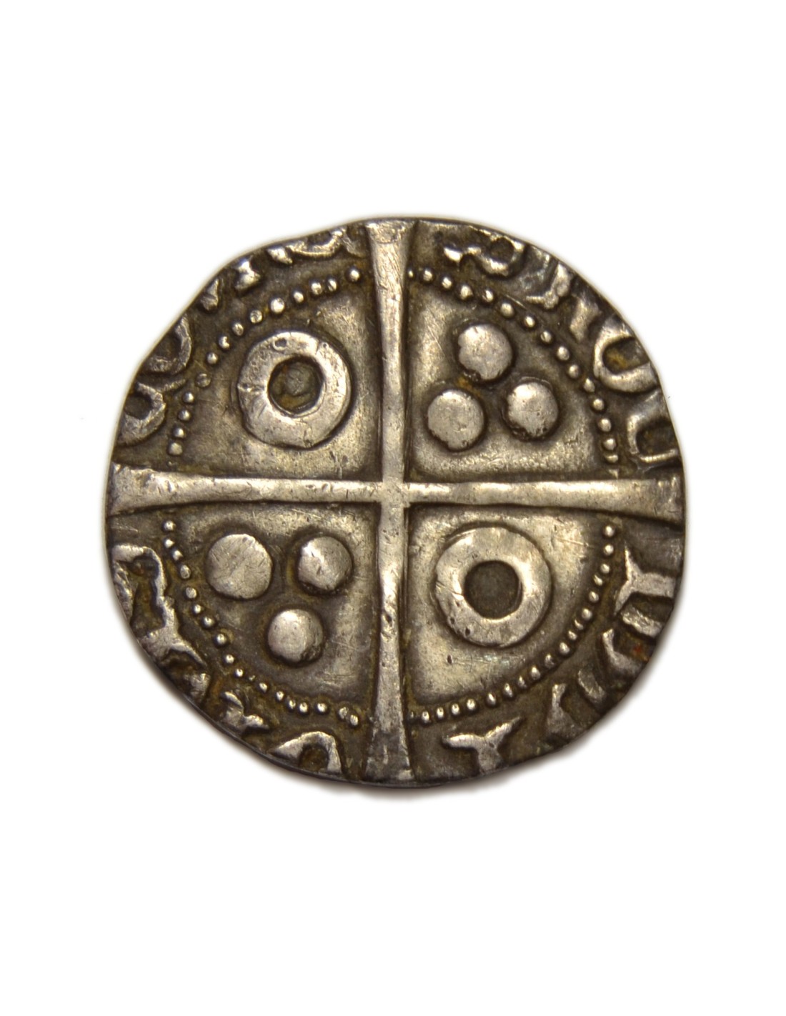 R/ Cruz pasante con anillos y grupos de tres puntos alternando espacios, a su alrededor: ·COME·S·ROC·ILLI·ONIS. Anillo o roel en 2º y 3er cuartel.