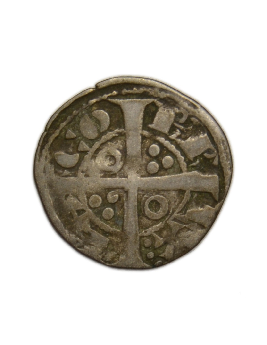 R/ Cruz pasante con anillos en espacios, a su alrededor leyenda: -IA-CO-B'R-EX:-