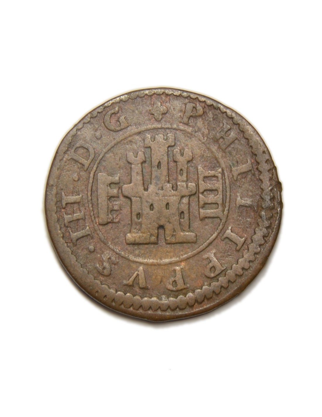 Peso: 3,09 grs. Metal: CU. Catálogo: C3-804. Conservación: MBC- Ceca: Segovia. Ensayador: -- Observaciones: ceca a la izquierda y valor a la derecha. Leyendas visibles. Bonita.