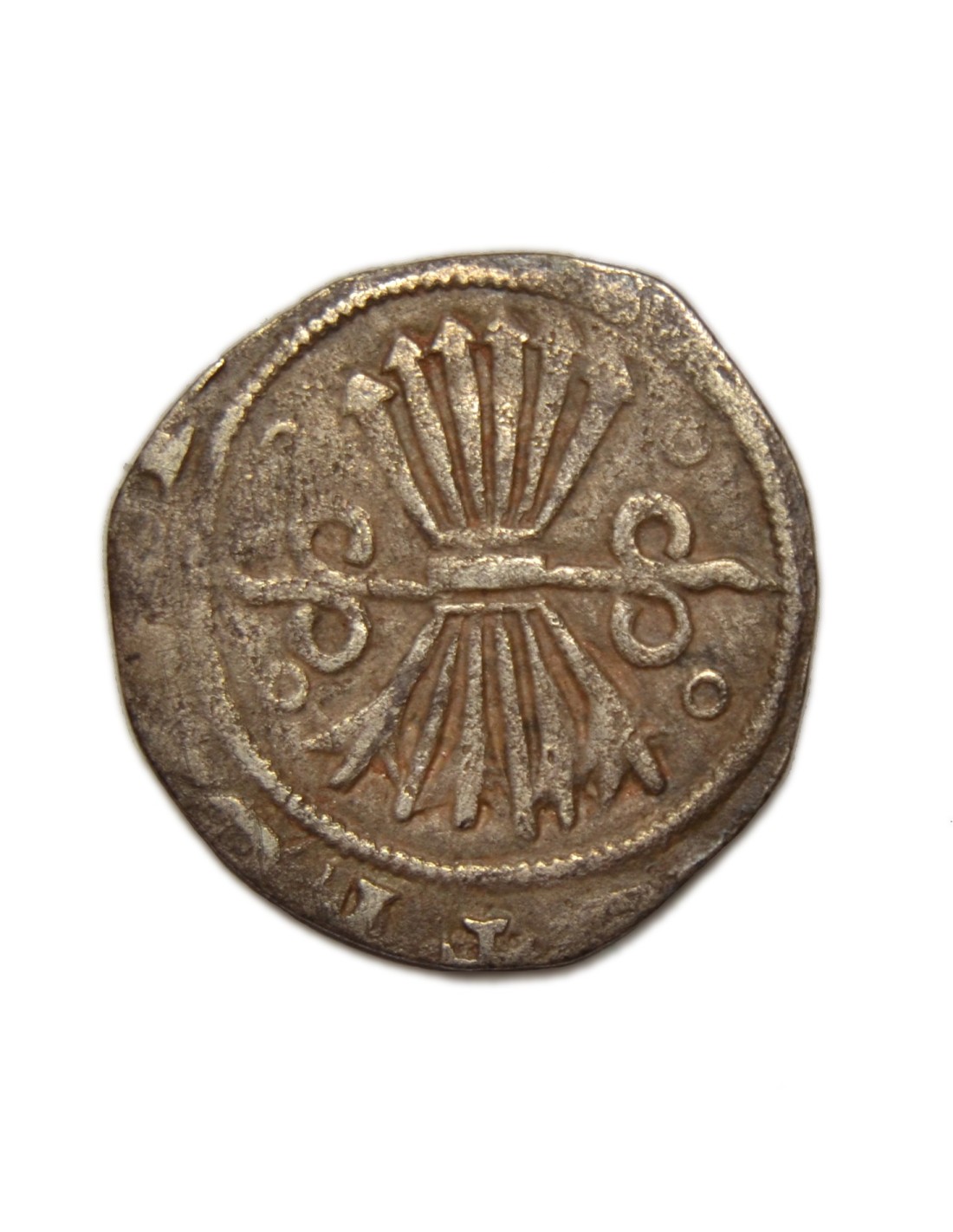 Peso: 1,30 grs. Metal: AR. Catálogo: C3-449 Conservación: BC+. Ceca: Granada. Observaciones:   Leyendas de anverso y reverso visibles parcialmente con cierta dificultad, las pocas que se observan debido al recorte de la moneda.  Bonita pátina.