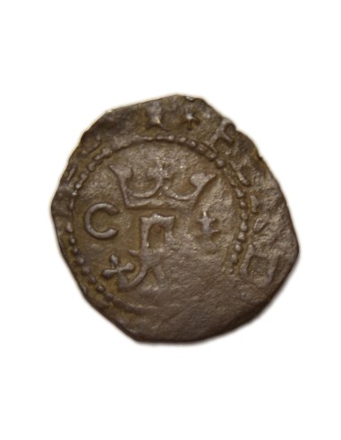 Peso: 0,70 grs. Metal: CU. Catálogo: C3-593 Conservación: BC+. Ceca: Cuenca. Observaciones: Leyendas de anverso y reverso visibles parcialmente y con cierta dificultad.