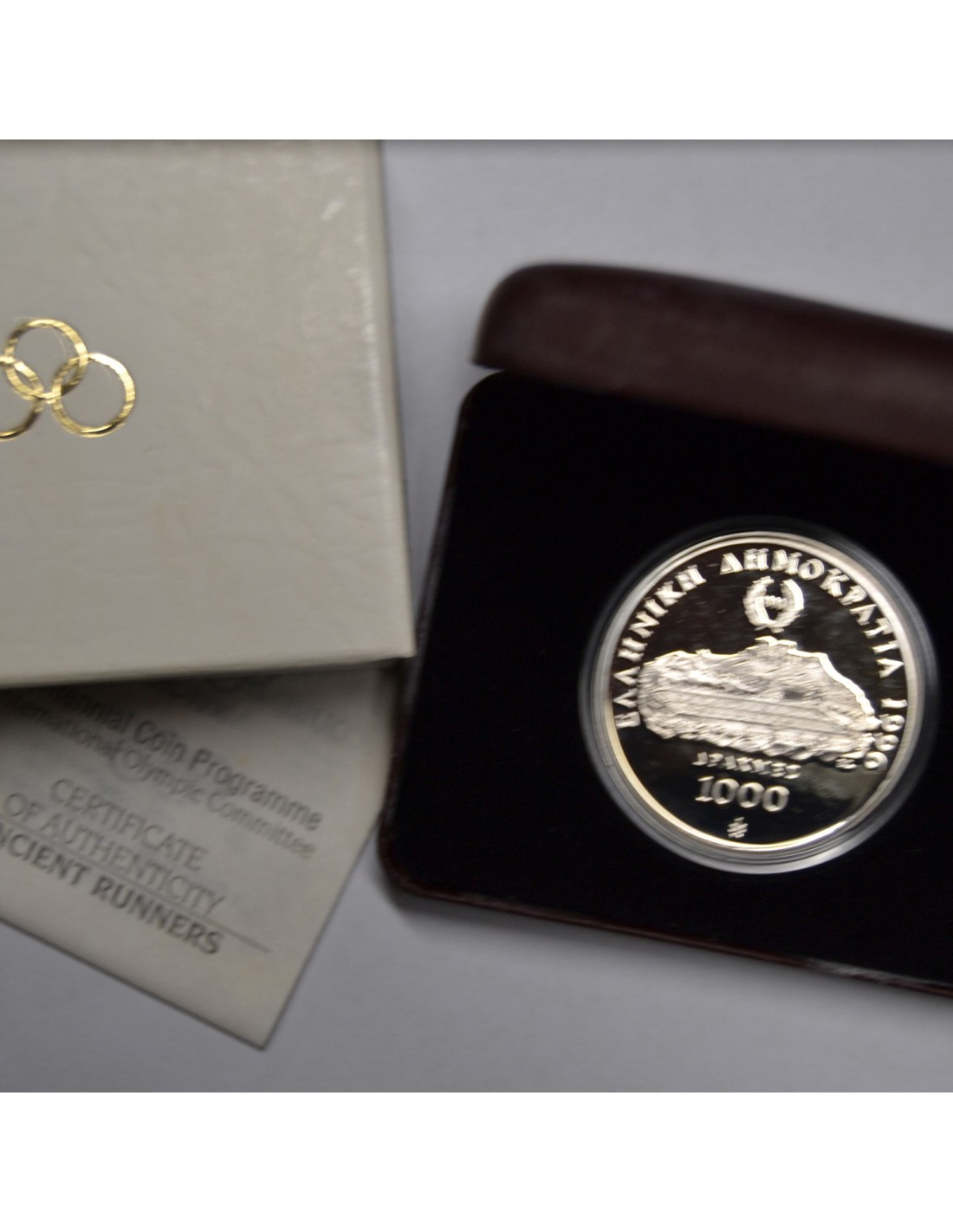 Motivo: 4 corredores de la antigua Grecia. Observaciones: La moneda del Centenario. Comité Internacional Olímpico. Se adjunta en estuche oficial y certificado de autenticidad Nº VH02347. Una preciosidad.