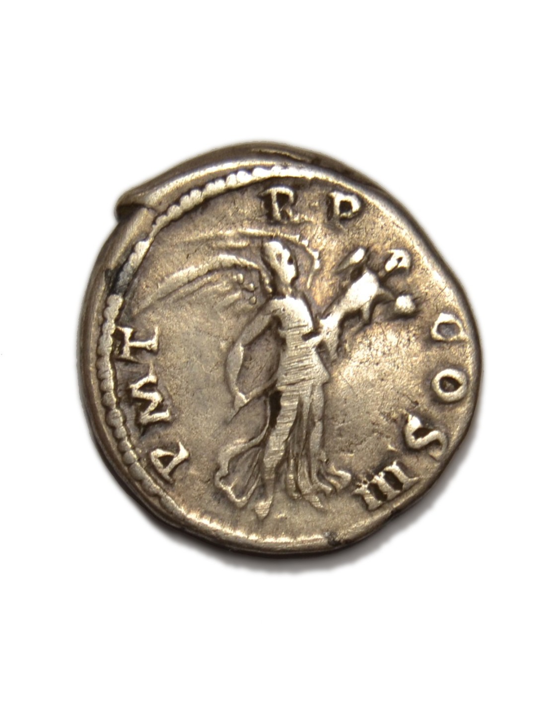 R/ Victoria en vuelo a la derecha portando trofeo, a su alrededor leyenda P. M. TR. P. COS. III.