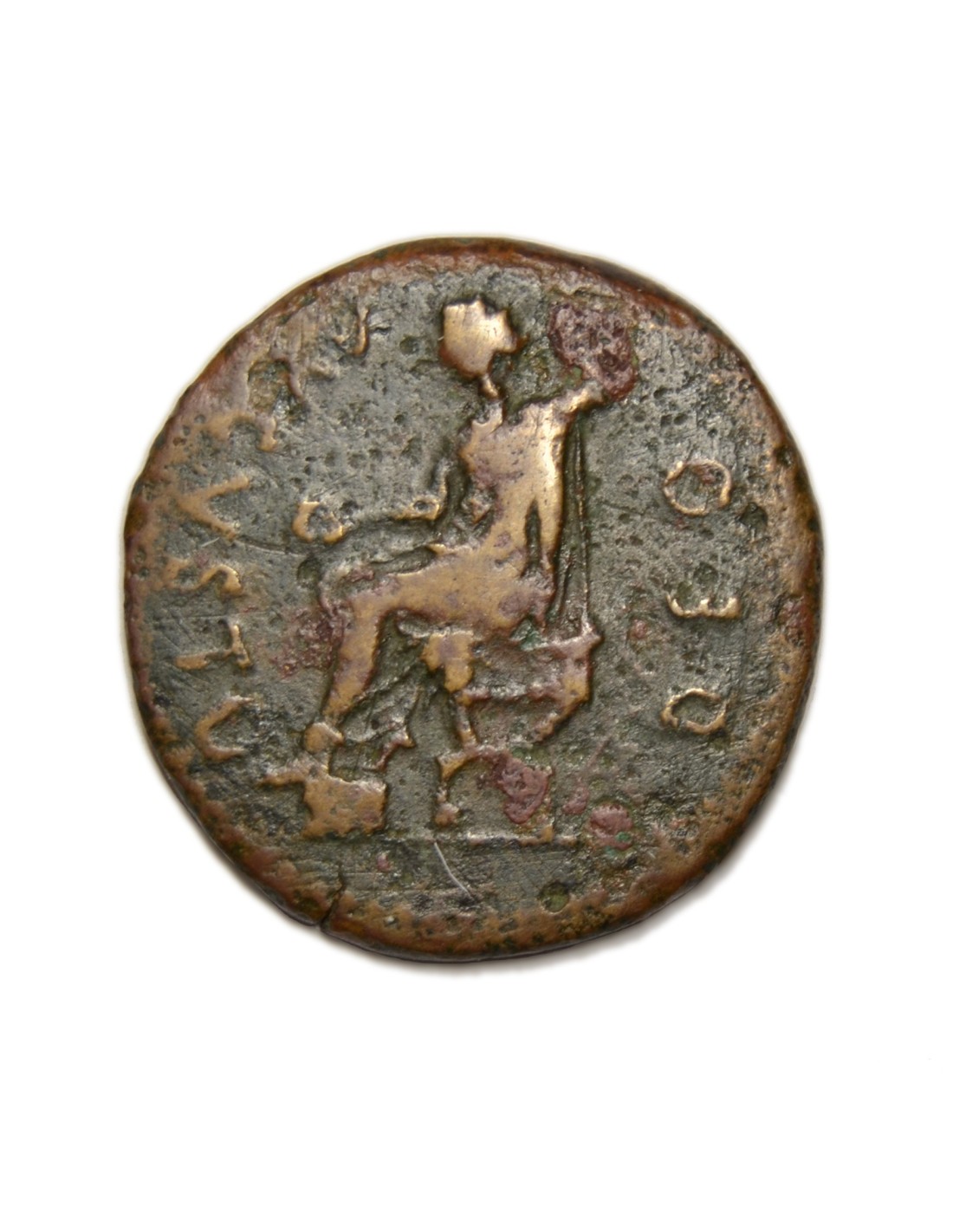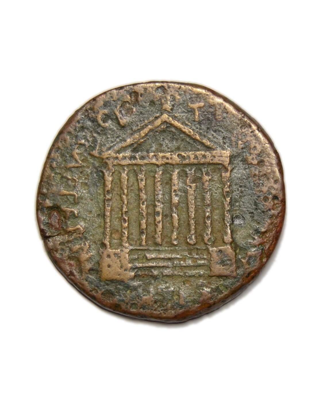R/Templo octástilo estrecho con escalinata central, y a su alrededor leyenda: AETERNITATIS AVGVSTAE. C.V.T.T.