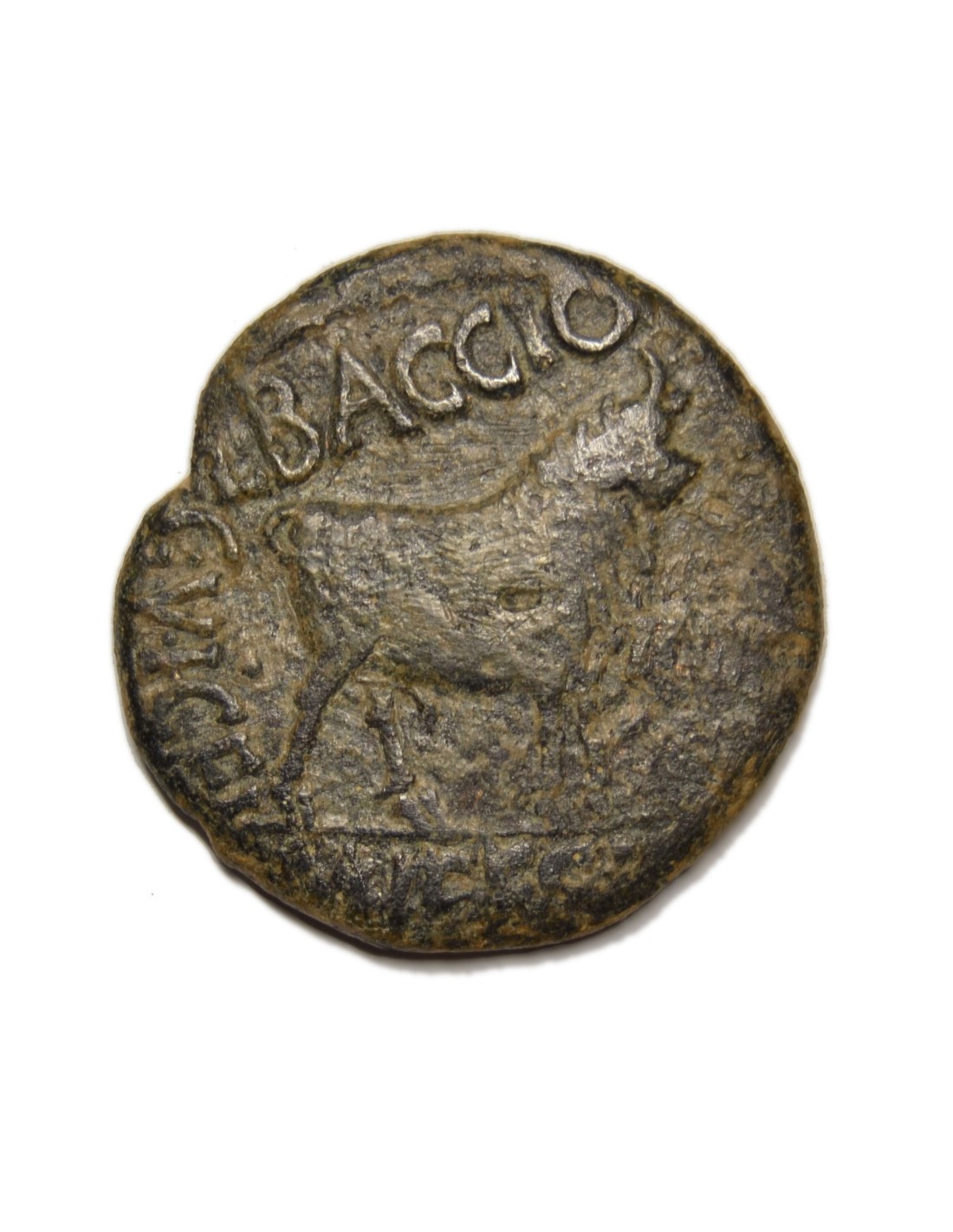 R/ Toro en marcha a la derecha, a su alrededor la leyenda: C. V. I. CEL. BAGGIO - II VIR. - MN. FESTO.