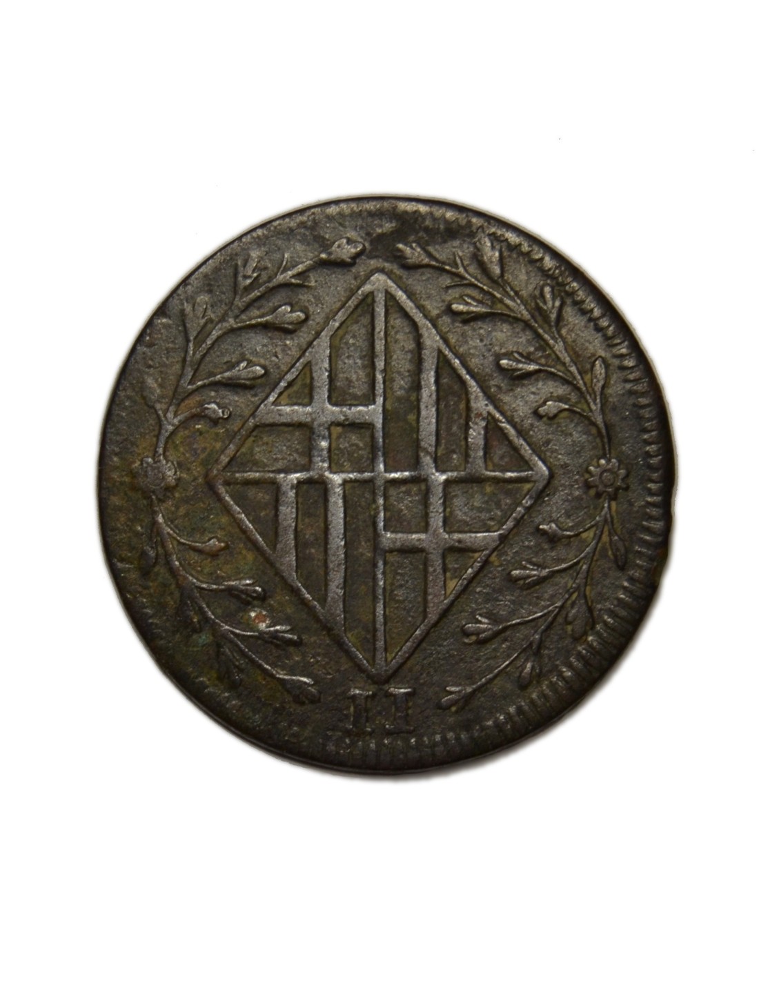 Peso: 4,15 g. Metal: CU Catálogo: C3-9 Conservación: MBC-/MBC Ceca: Barcelona. Ensayador: --