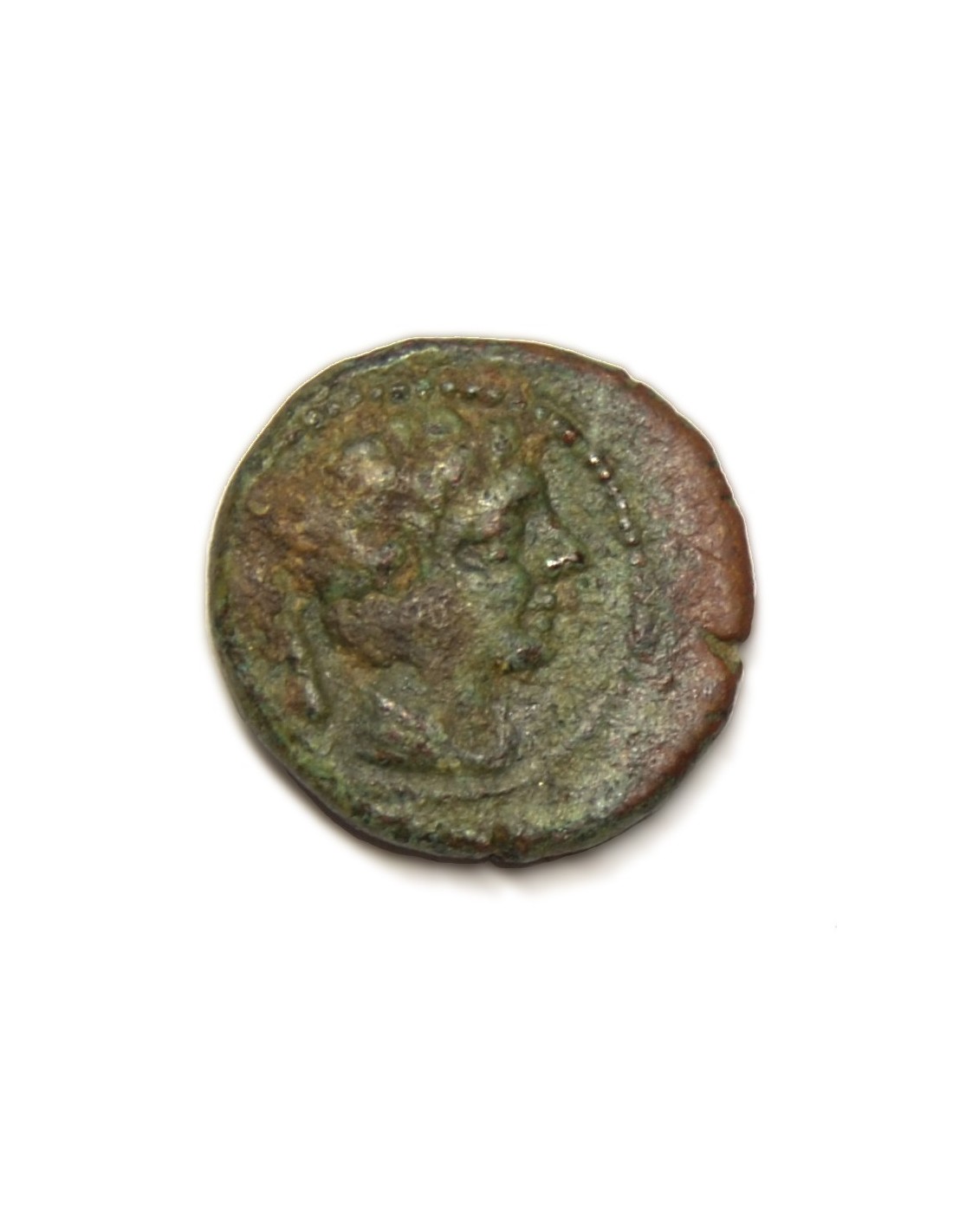 A/ Cabeza masculina a la derecha con capa al cuello, detrás maza.