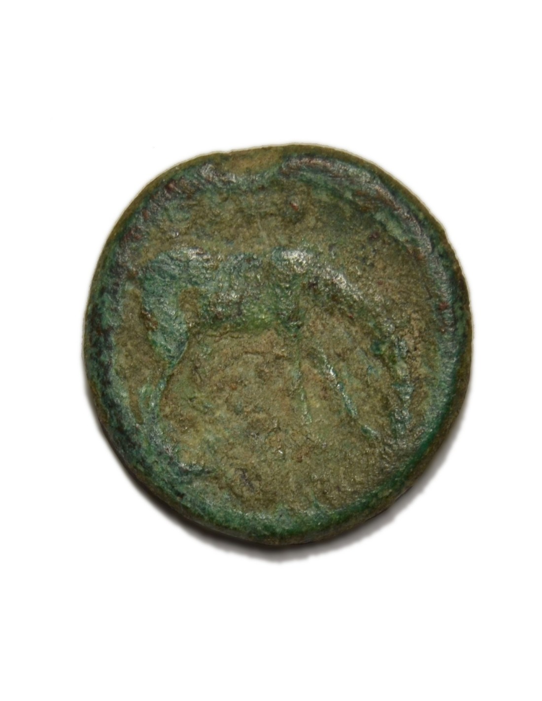 R/ Medio Pegaso a la derecha, encima tres glóbulos, debajo leyenda ibérica: KESE.