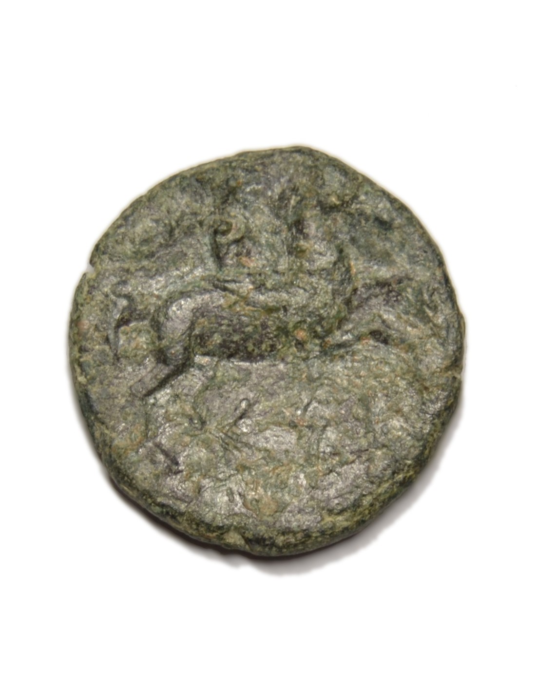R/Jinete con palma a la derecha; debajo inscripción ibérica KESE.