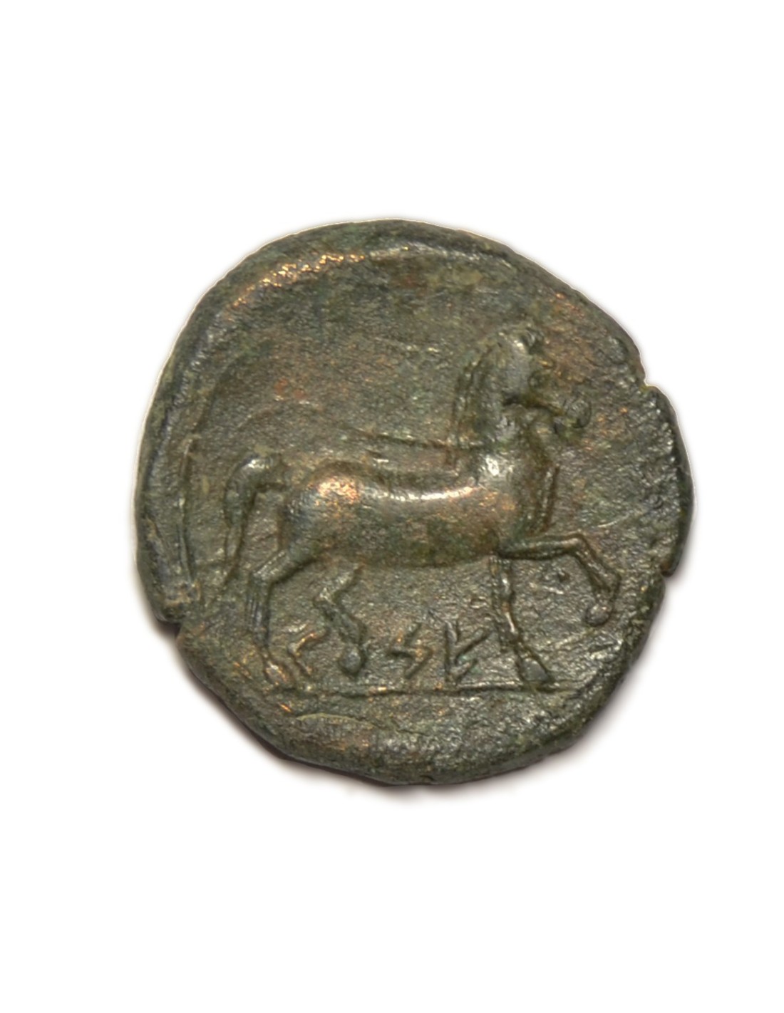 R/Caballo al trote con riendas sueltas; debajo sobre línea inscripción ibérica KESE.