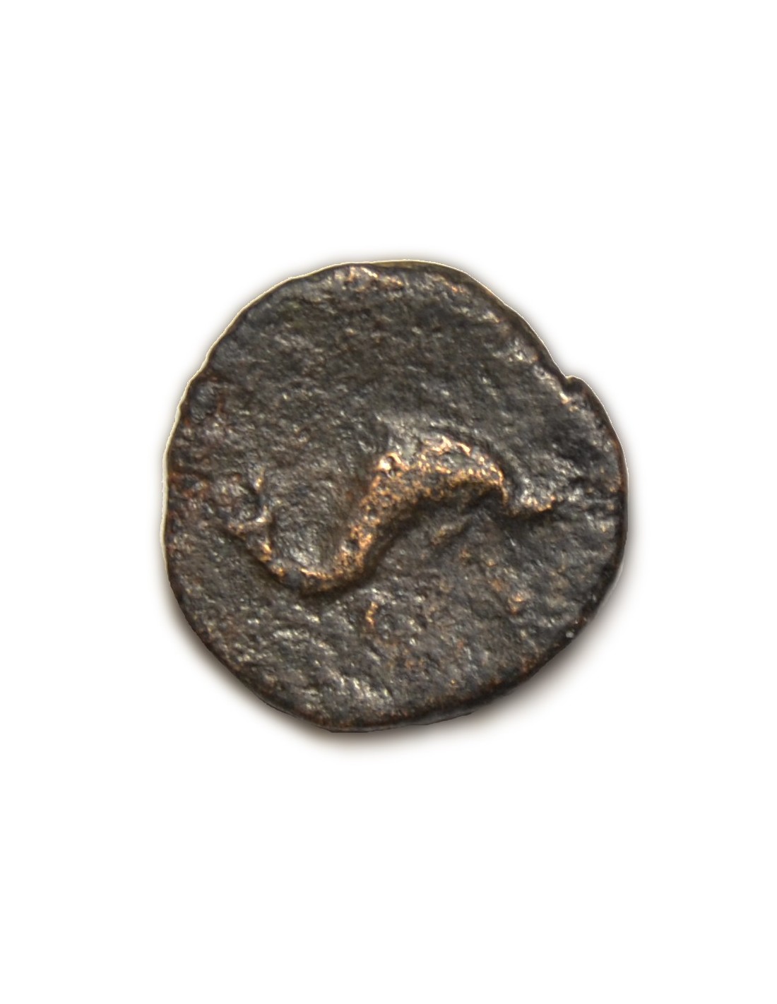 R/ Delfín a la derecha; debajo inscripción ibérica KESE.