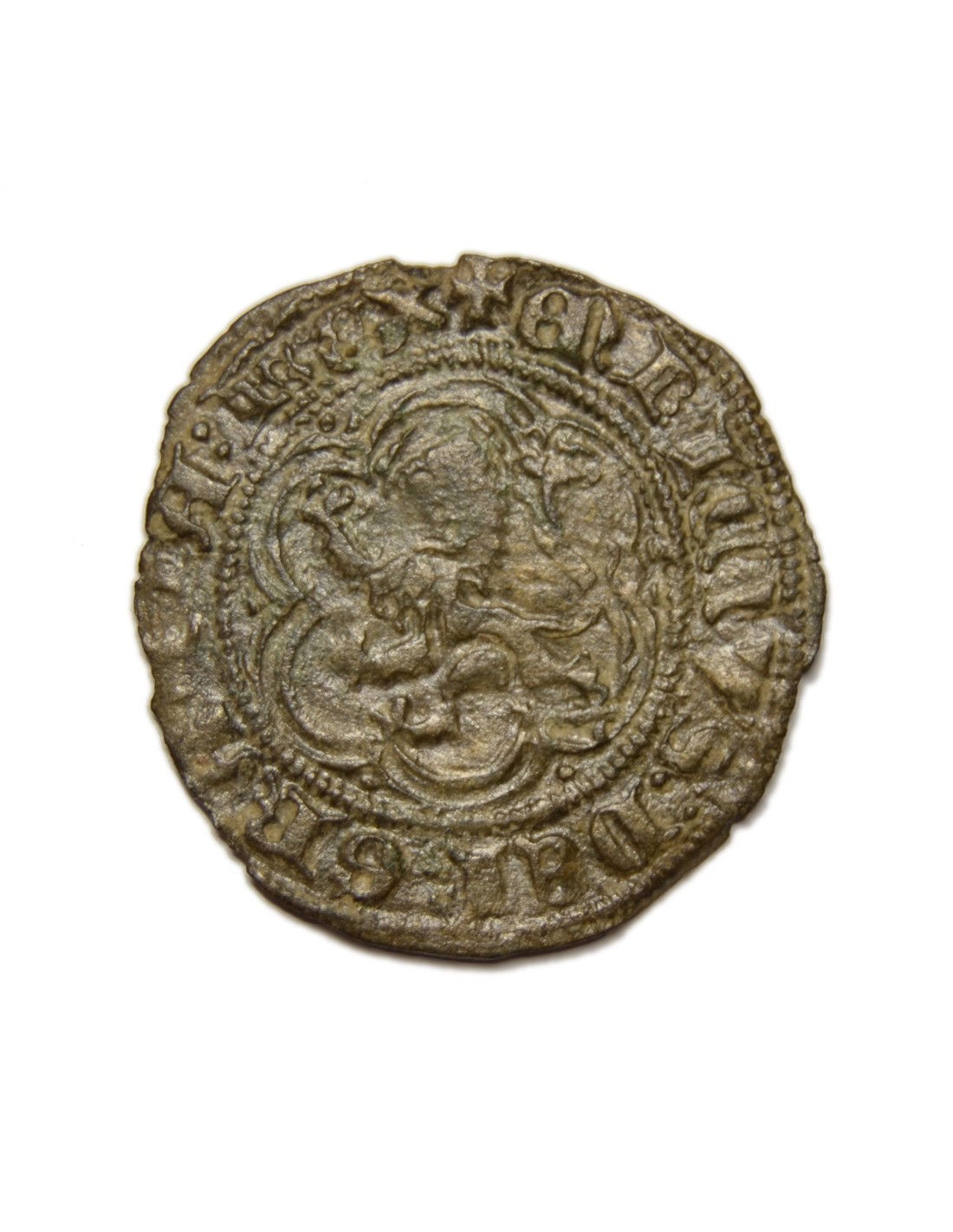 R/ León rampante a la izquierda dentro de gráfila lobular, a su alrededor leyenda: + ENRICVS:DEI: GRACIA:REX