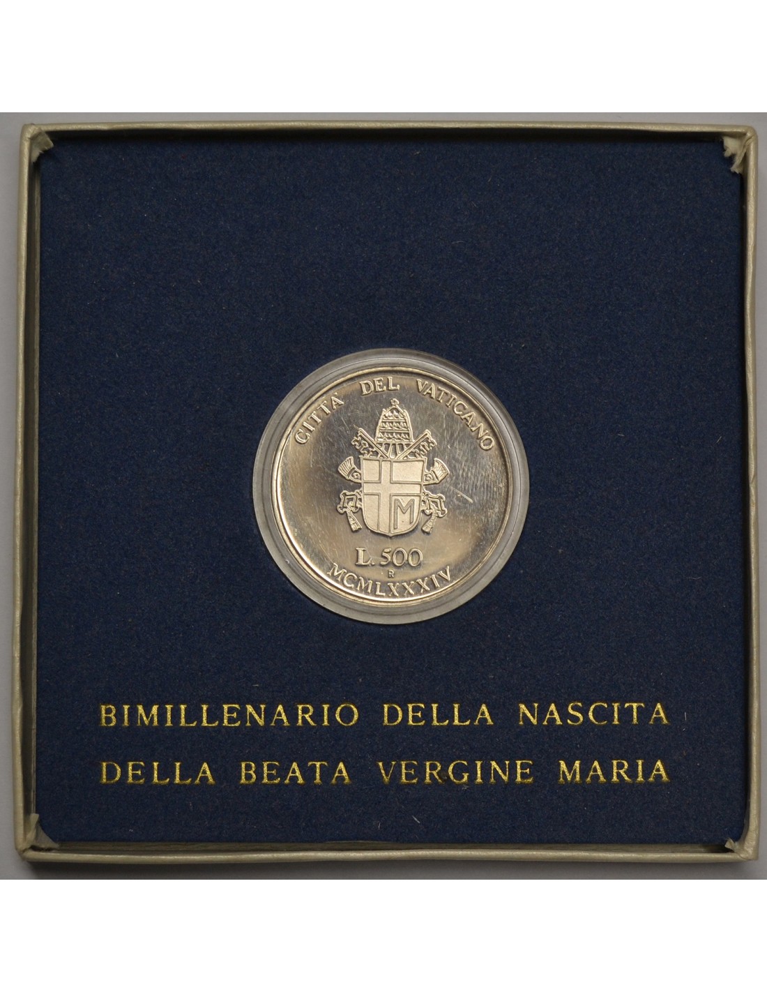 VATICANO. 500 LIRAS, 1984. 2000 AÑOS DEL NACIMIENTO DE LA VIRGEN MARIA